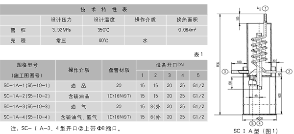 单一相取样冷却器(SC-ⅠA型)见图1, 表1