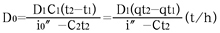 对于不同型号规格的混合器,为了加热不同温度的热水,在额定流量D1(th)下,所需蒸汽量D0(th)可由下式计算: |