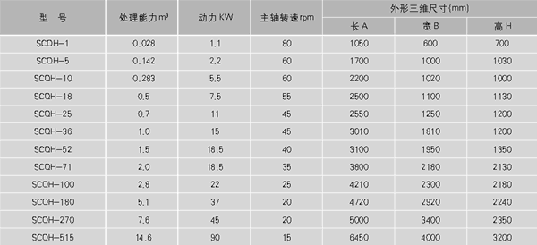说明:1、动力随物料特性变化而变化,上表中的动力是根据物料比重为512kg/m3,并且无流动性计算出来的。机器装物料的最大重量(kg)=工作容积(m3)×512kg/m3。