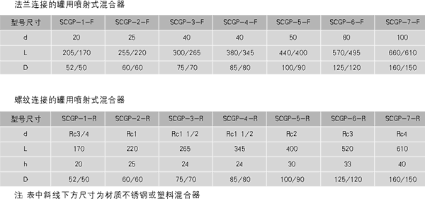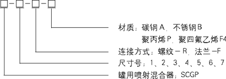 如选择一台尺寸号为3,法兰连接的不锈钢SCGP系列罐用喷射式混合器,标注:SCGP-3-F-B