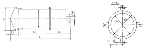 KAP型压缩空气排放消声器示意图 支耳尺寸图